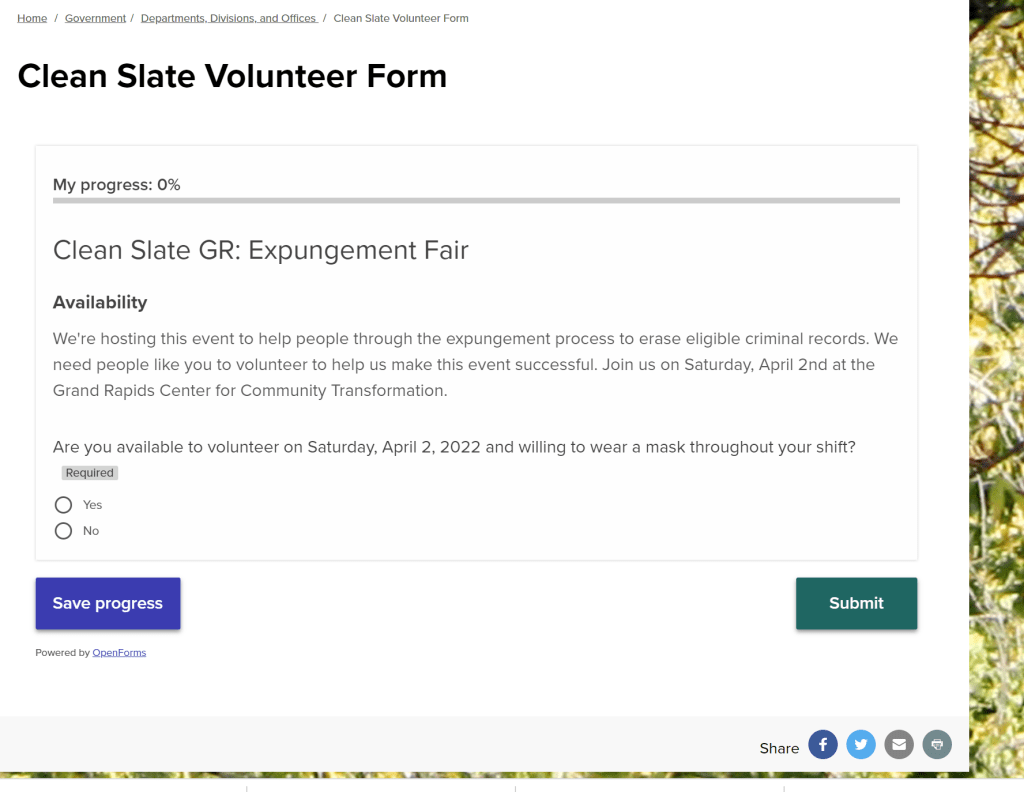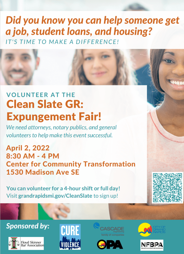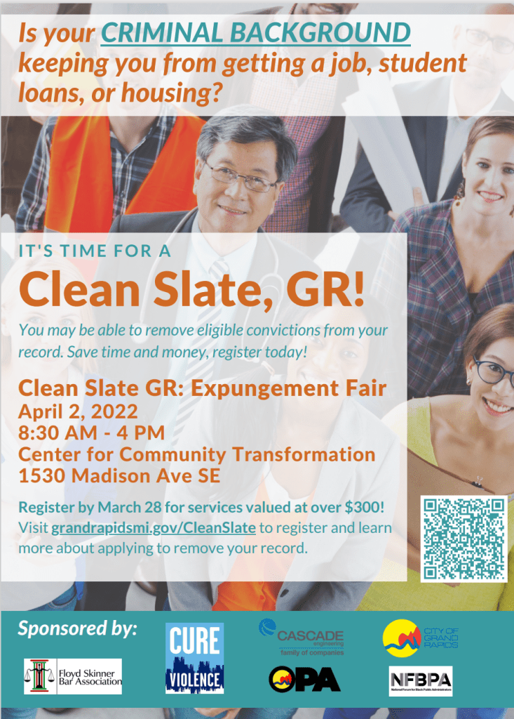 The City of Grand Rapids Office of Oversight and Public Accountability collaborated with partners to organize an expungement fair to help community members gain access to work, housing, and education loans. The original content and flier design had room for improvement.