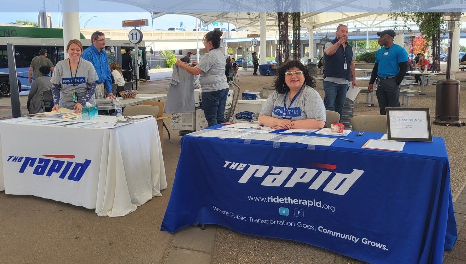 In early September 2022, Amanda was reflecting on her work day over a meal. The Rapid was facing a worker shortage, the new CEO wanted to see the Central Station Platform activated, and The Rapid was looking to improve relationships with organizational partners. An idea struck, she approached the CEO about creating a multi-agency job fair on the platform with a cross-departmental team. With approval, Amanda coordinated with her team, Human Resources, and External Relations to plan and implement the “Roll with Us” Job Fair.